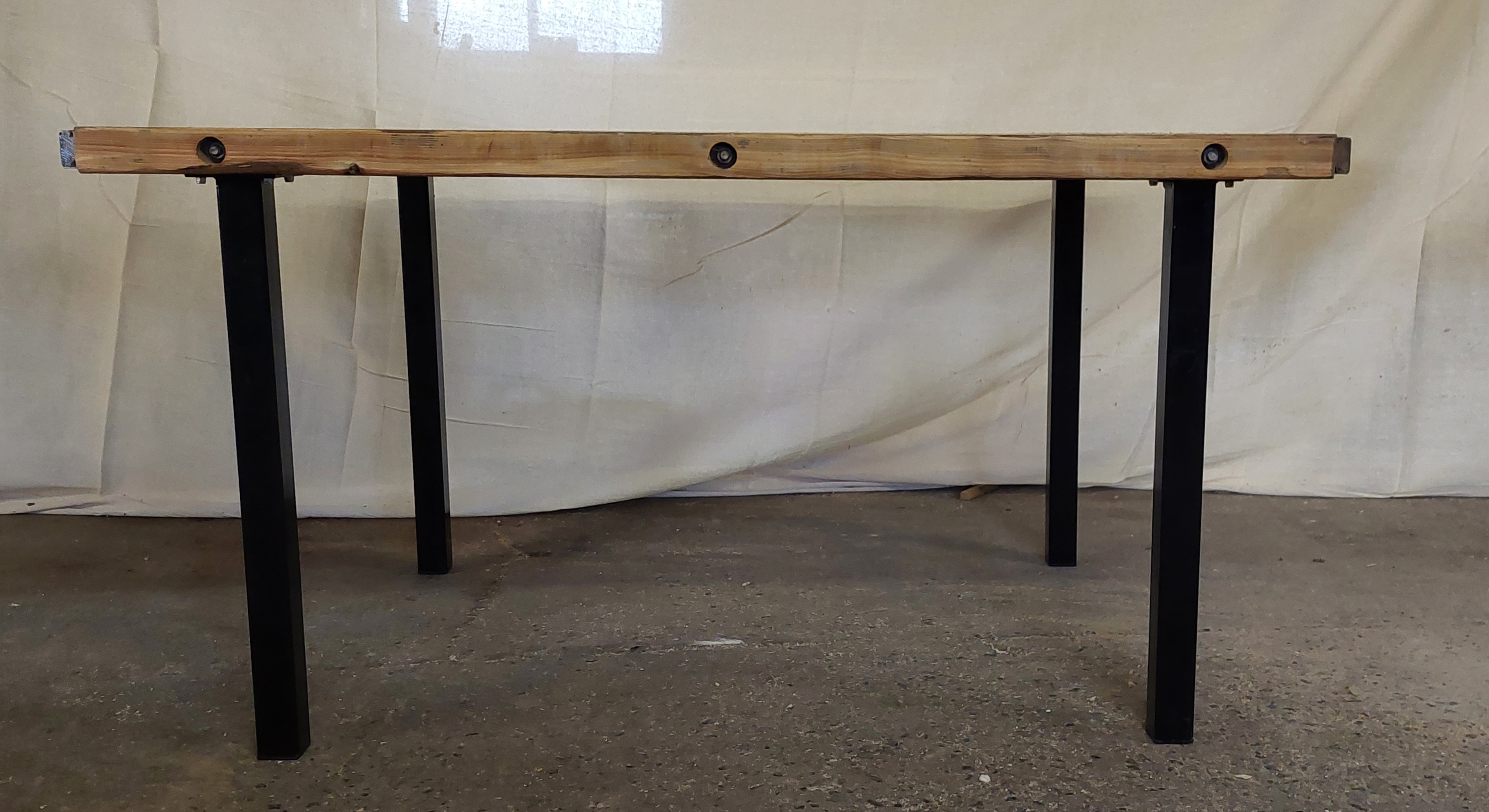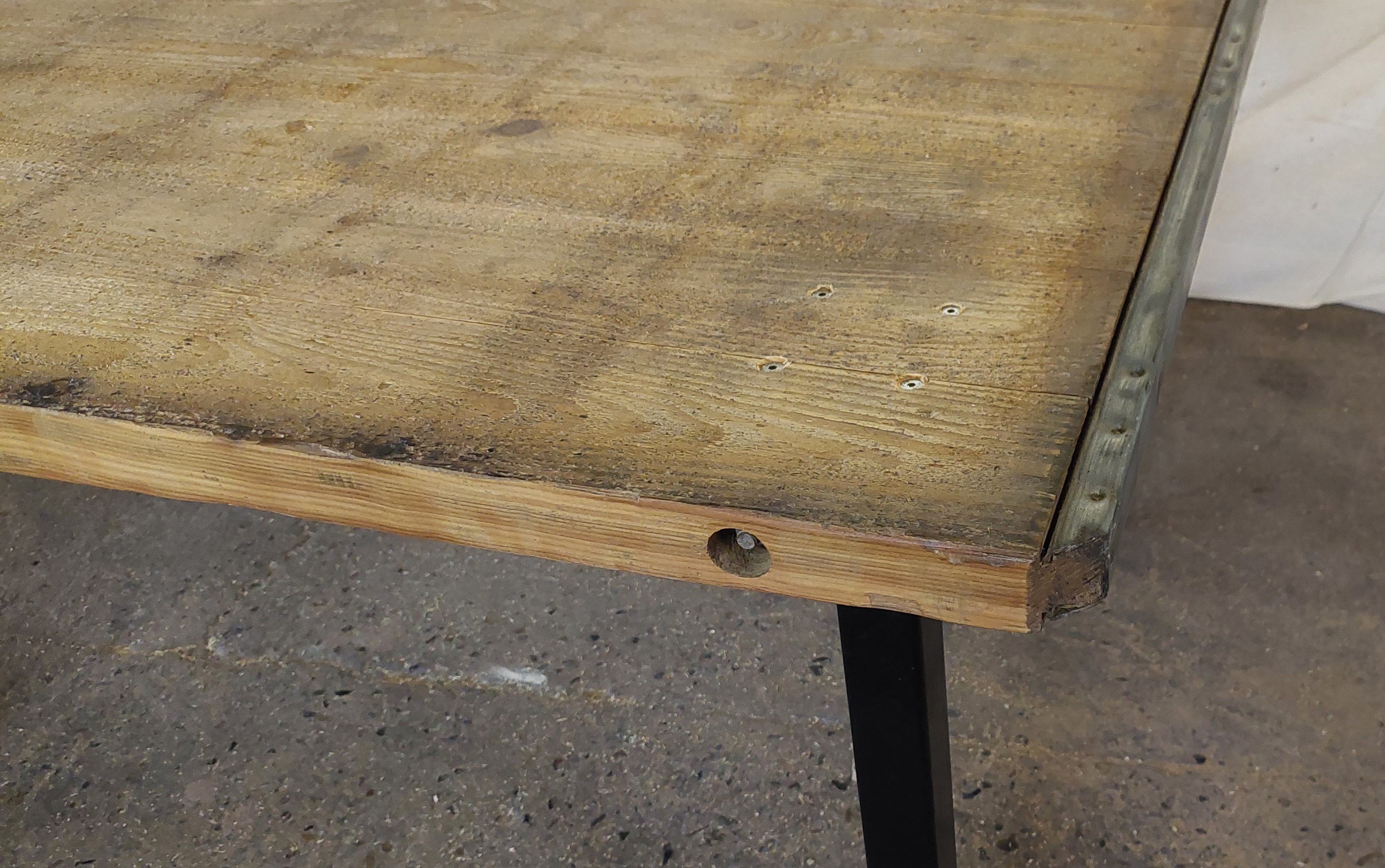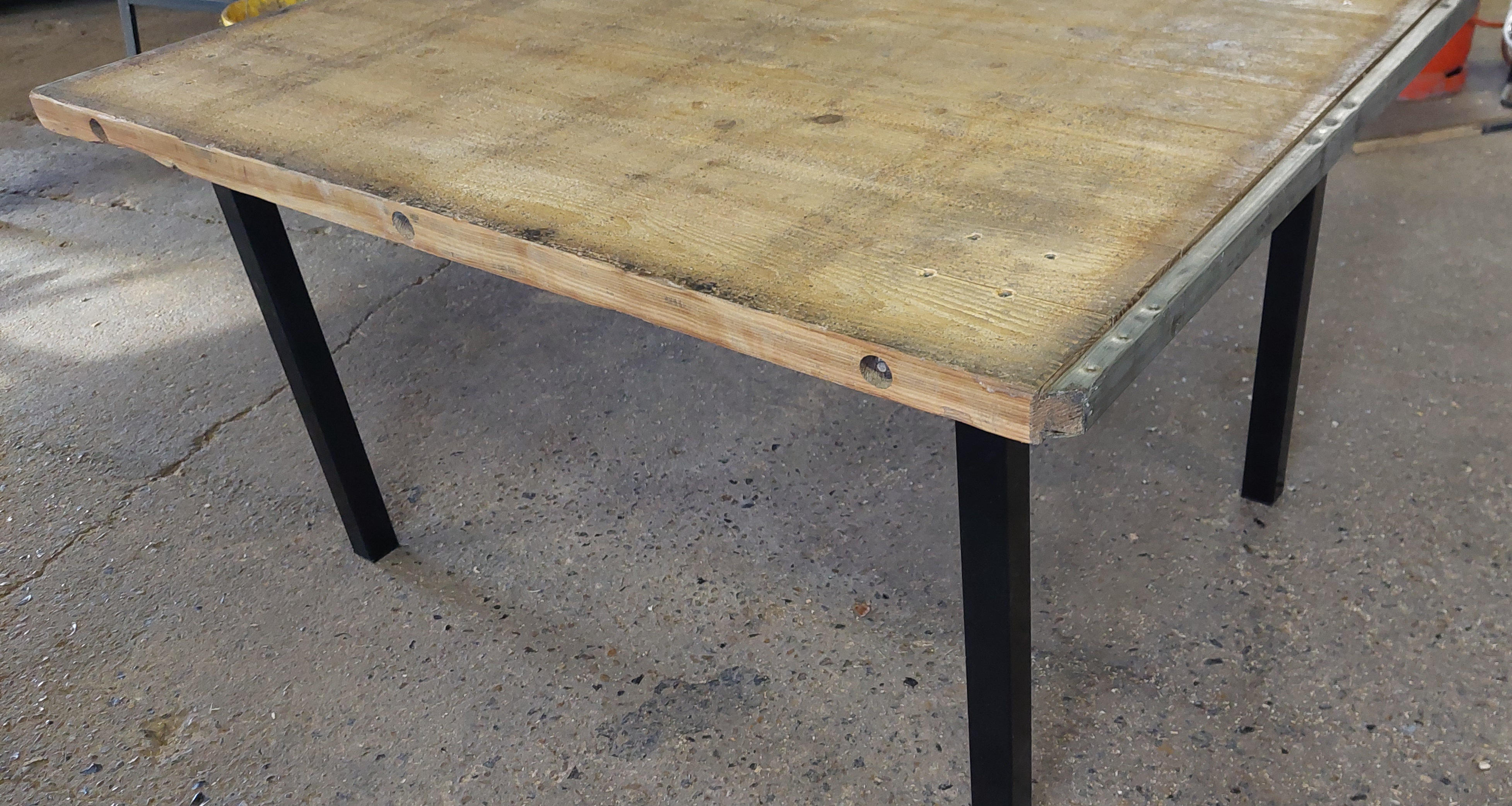 Each leg is attached with 4no countersunk bolts, which pass through the table top to provide a more substantial fixing. This also adds to the rustic industrial appearance.