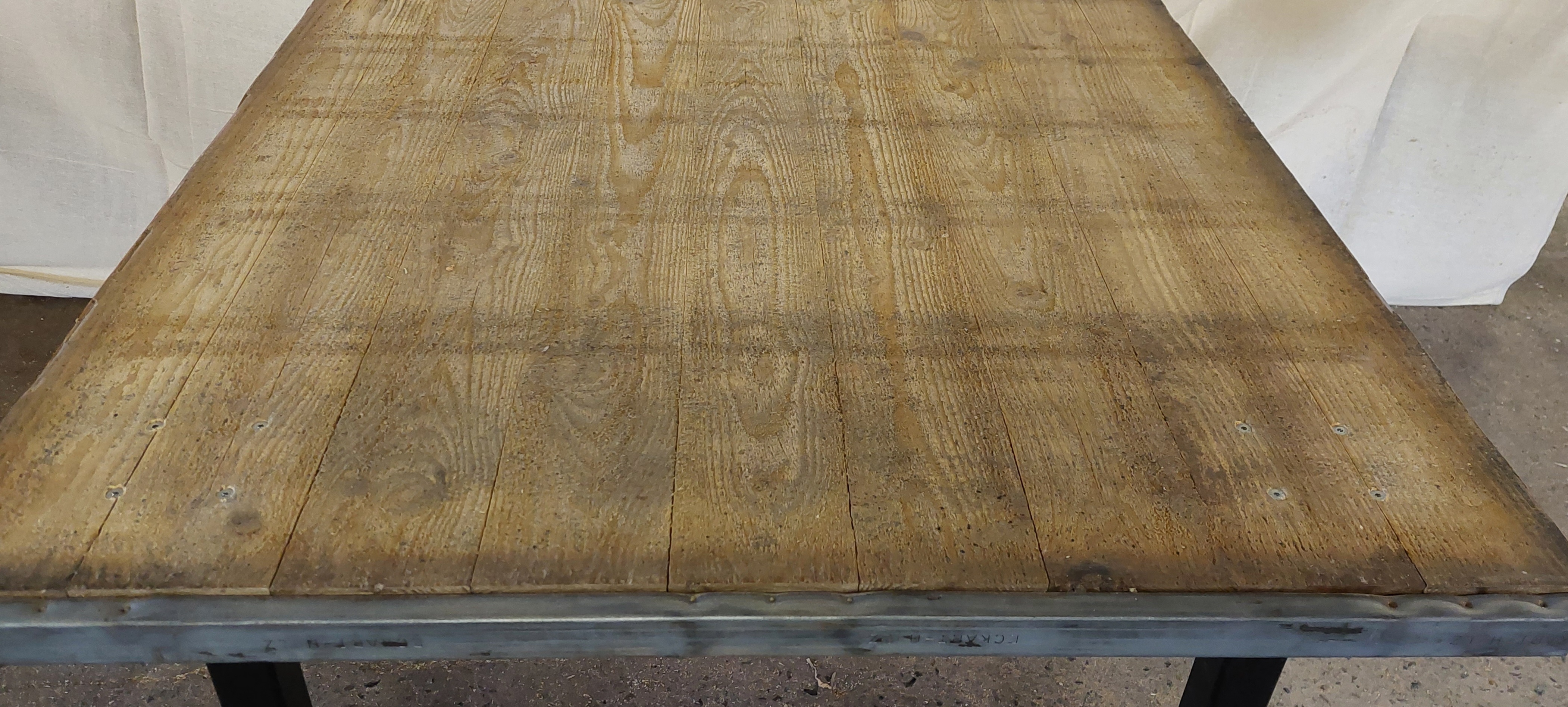 These tables are constructed by us using reclaimed Douglas Fir Steenschotten. The table measures 1.1m X 1.4m X 0.76m high. The table top is approximately 50mm thick and weighs approximately 40kg